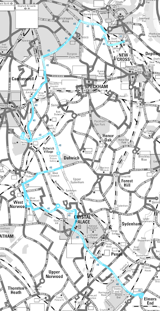 And the idea of 312 extended to Crystal Palace. There are interesting suggestions, to ring around Crystal Palace's stand issue. Worth noting 363 to Norwood Junction is a no-go for costs in comparison.